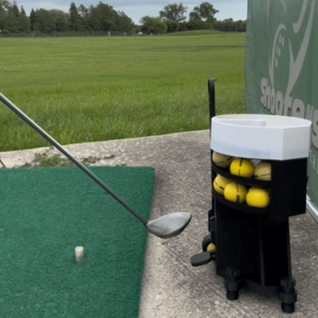 Adjust the Range Reload’s height to match your tee. These Risers also help keep it stable on uneven grass or ground.